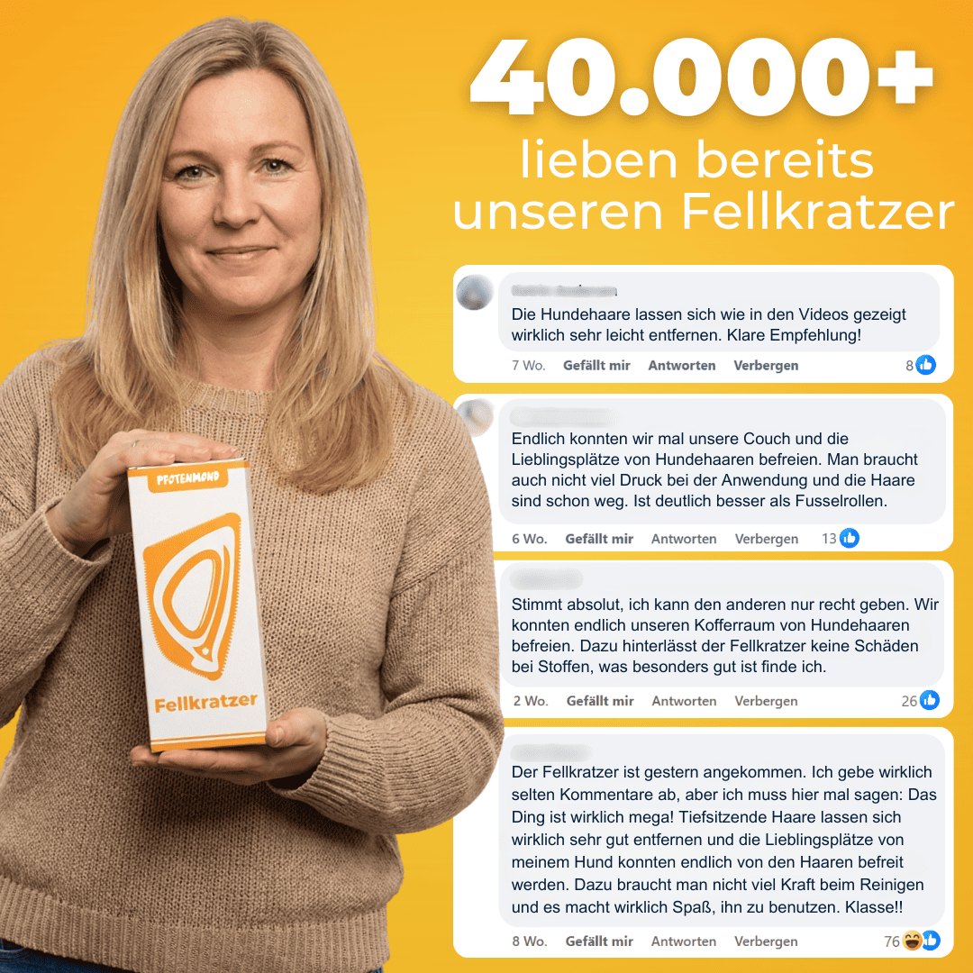 Über 40.000 zufriedene Kunden lieben bereits den Fellkratzer – und das aus gutem Grund. Er entfernt Hundehaare schnell, gründlich und ohne Aufwand. Überzeuge dich selbst und teste den Fellkratzer 30 Tage risikofrei. Wenn er dich nicht überzeugt, bekommst du dein Geld zurück.