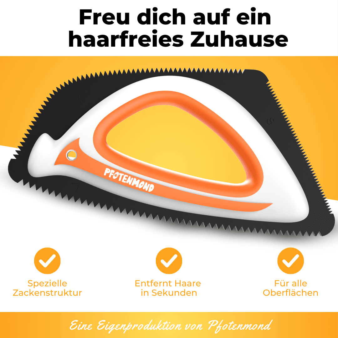 Der Fellkratzer arbeitet mit einer speziellen Zackenstruktur, die in verschiedene Größen unterteilt ist. Jede Seite hat unterschiedlich feine und grobe Zacken, sodass du sowohl große Flächen als auch tief sitzende Haare gezielt entfernen kannst.